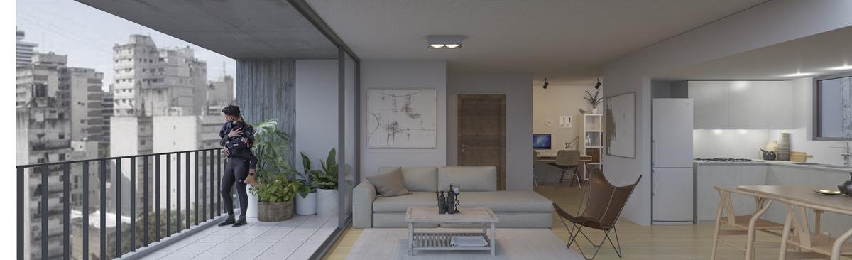 Departamento de 1 dormitorio + comodín en semipiso. Unidad al contrafrente orientada al oeste, consta de estar comedor, integrado a la cocina, con ventilación natural, propiciando al ambiente ventilación cruzada, y muy buena luminosidad. 1 Baño, dormitorio con placard, y 2do ambiente que puede funcionar como comodín, escritorio, lugar de estudio o trabajo. Posee un patio de uso exclusivo de 44,91.