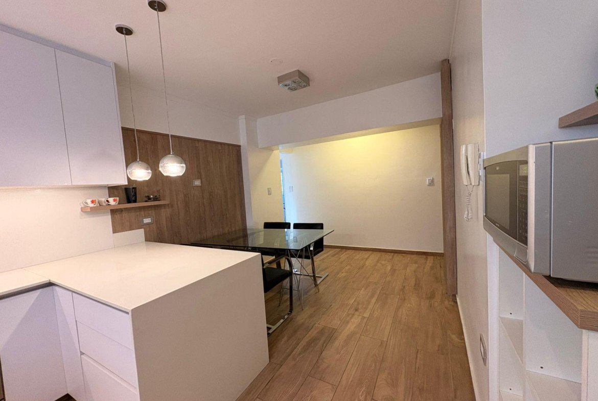 Al ingresar, nos encontramos con un acceso principal al amplio living-comedor, de generosas dimensiones, con salida al balcón corrido al frente, que aporta gran ingreso de luz natural y ventilación.