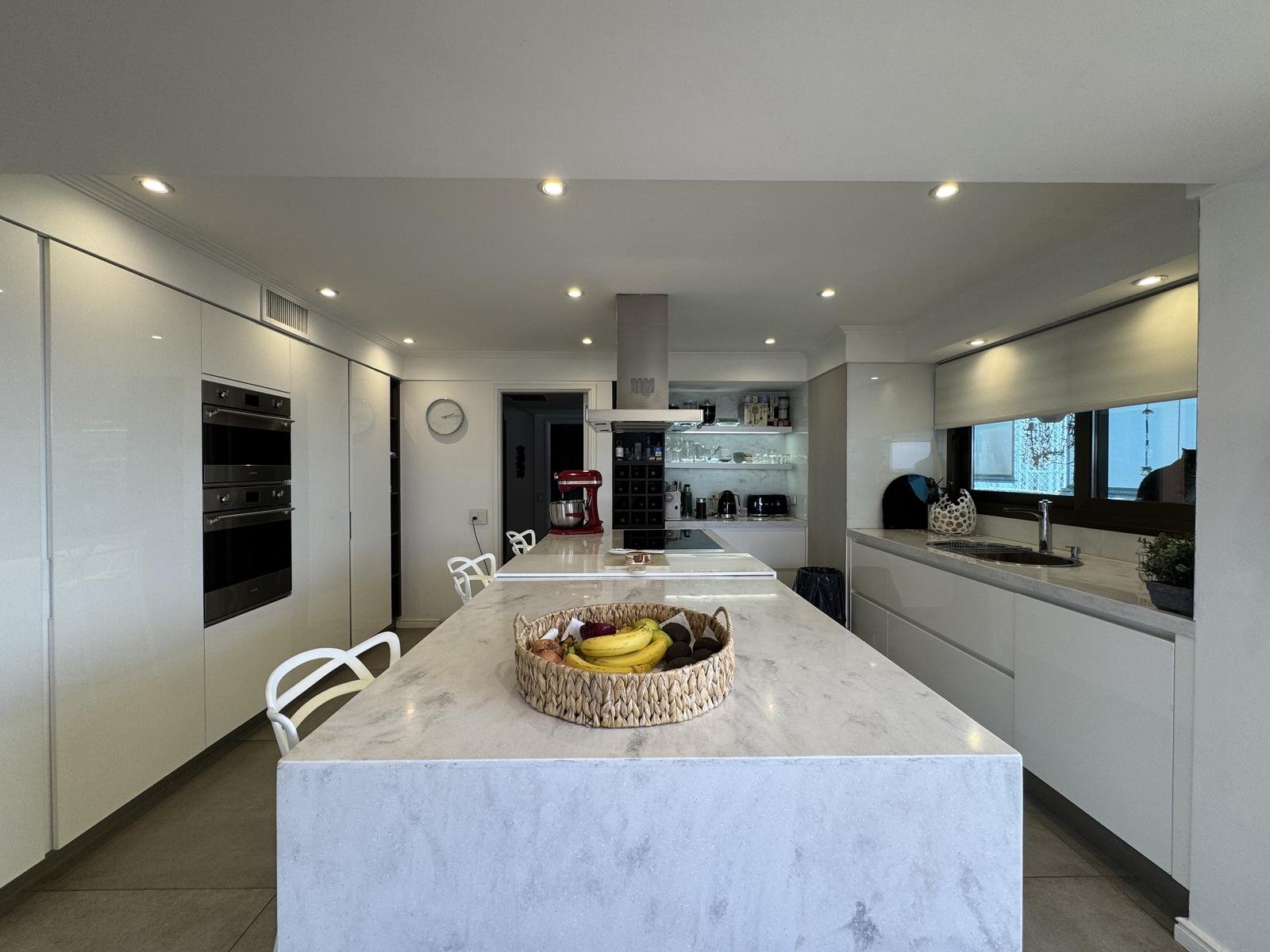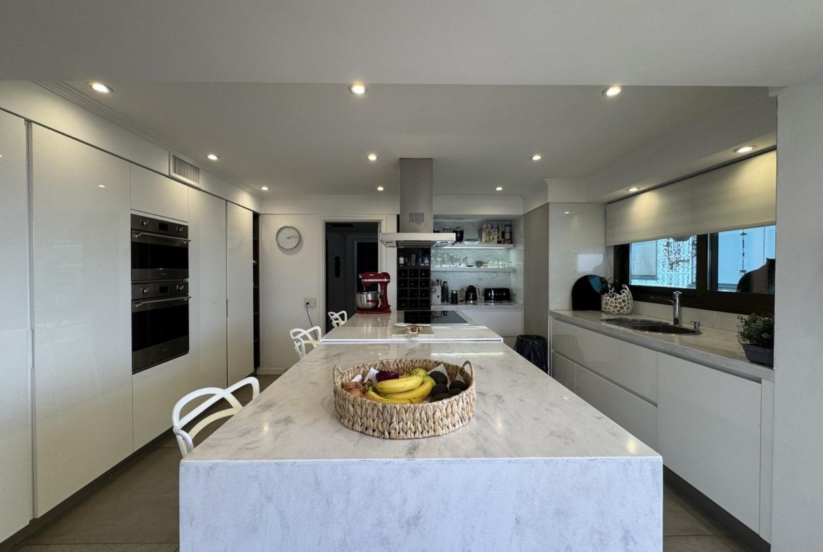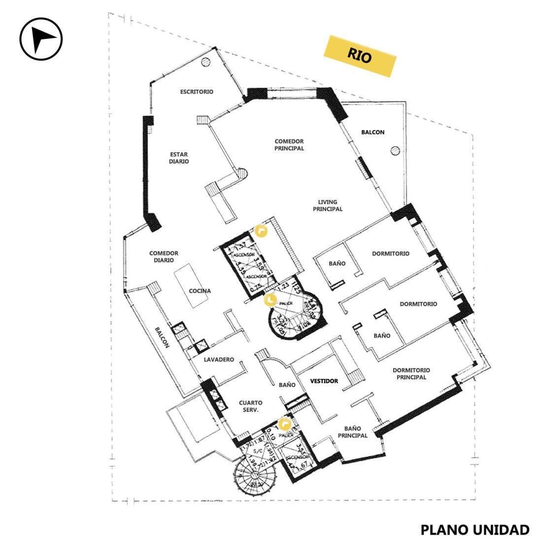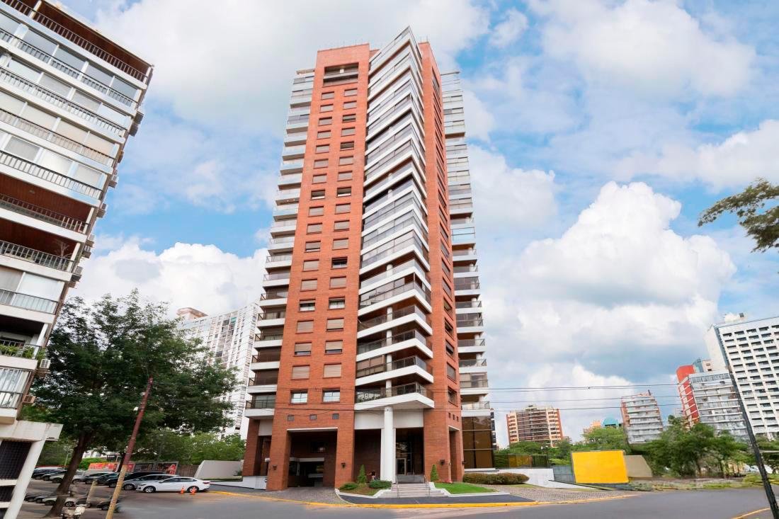 Un amplísimo living comedor, una cocina completa con isla, un comedor diario, un estar diario, tres dormitorios con baños en suite, el principal con vestidor y baño completo con jacuzzi, un cuarto de servicio completo con baño, un lavadero, dos ingresos independientes y un ingreso de servicio, y tres balcones con espectacular vista hacia el rio Paraná. Es como una casa en altura, con ambientes amplios y muy luminosos. La unidad viene con tres cocheras y una baulera.