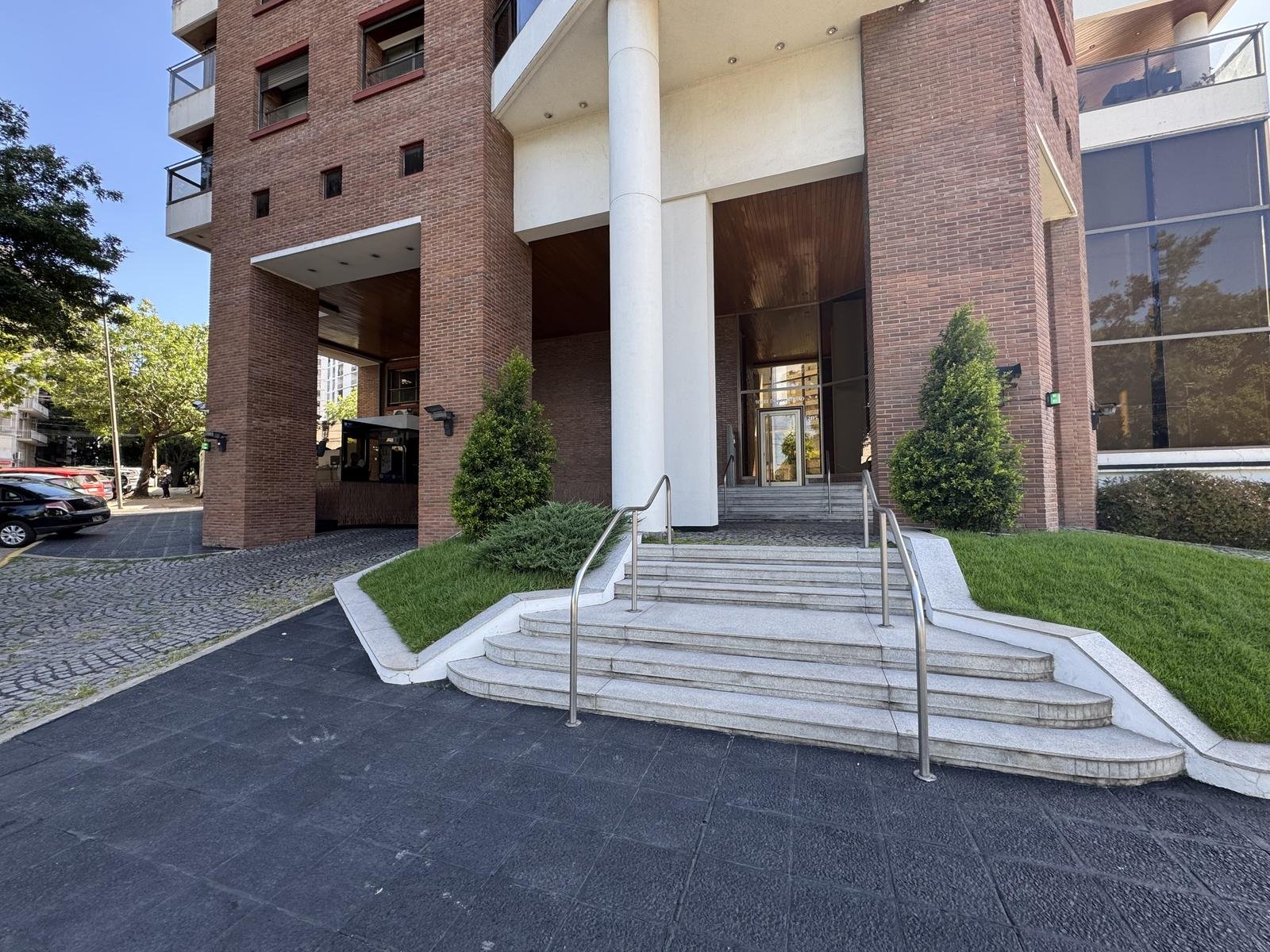 El edificio está desarrollado en esquina, tiene 20 pisos de altura y 3 ascensores, y cuenta con amenities en la terraza como ser: una extensa sala de reuniones/SUM, baños, cocina, pileta circular con solárium de soletas atérmicas, cerramiento rompeviento. Cuenta con seguridad y vigilancia las 24hs del día, y con dos ingresos. En su exterior encontramos la escalera de incendio.