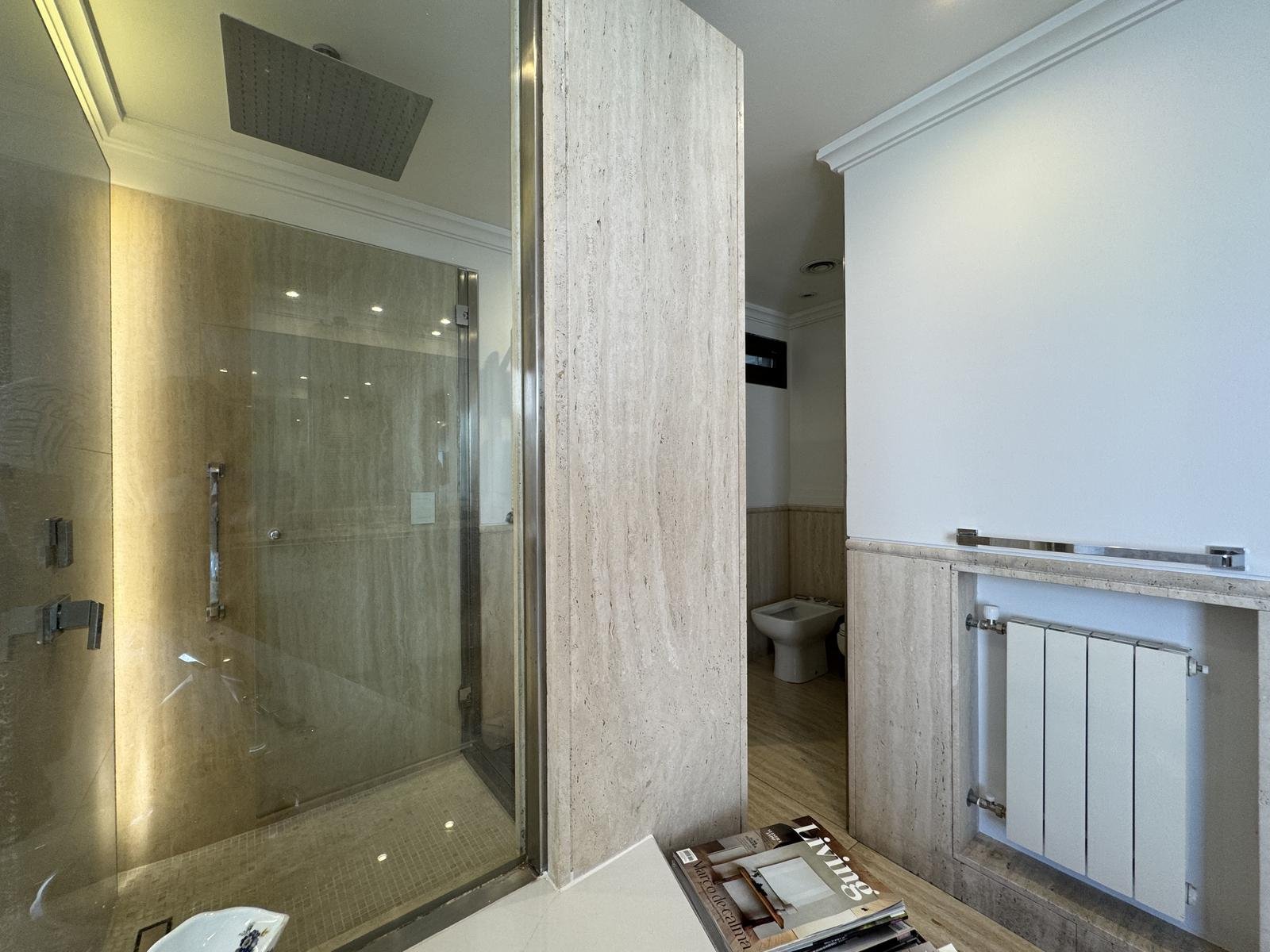 Los materiales son de primera categoría, con pisos de parque de madera maciza, revestimientos y bachas de mármol en los baños, puertas y muebles en madera de calidad, y cielorrasos con molduras con artefactos de iluminación embutidos. Sistema de calefacción por radiadores y caldera mural. El sistema de aires se puede manejar individualmente en en cada ambiente permitiendo adecuar la temperatura a gusto. Dentro de la remodelacion se atomatizaron todas las persinas y blackouts.