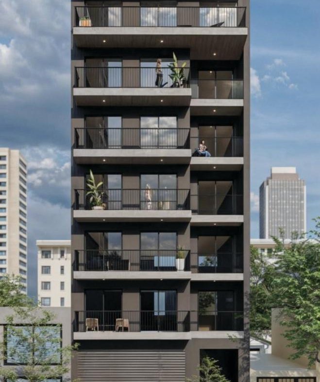 Edificio residencial de diseño moderno y estilo minimalista, que utiliza materiales locales, con una estructura de 6 plantas. Consta de 16 unidades de un dormitorio, un piso exclusivo de 3 dormitorios, un consultorio/departamento en planta baja y un local comercial al frente.