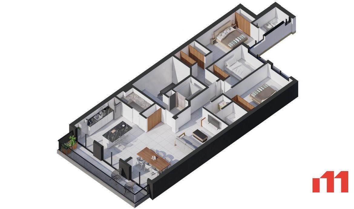 – 3 Dormitorios al frente, hall & piso exclusivo. 120,35 m2 cubiertos y 132 m2 totales.