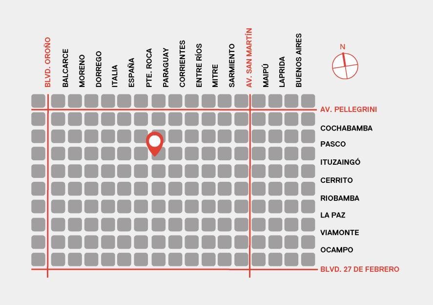 El Proyecto de arquitectura se ubica en la ciudad de Rosario, Santa Fe, específicamente en el distrito centro de la ciudad. El proyecto se encuentra sobre la calle Pte. Roca entre Ituzaingó y Pasco. Esta área, conocida por su mezcla residencial y comercial, ofrece un entorno dinámico y accesible. La proximidad a la Av. Pellegrini proporciona fácil acceso al transporte público y a una variedad de servicios como escuelas, hospitales y parques. Las regulaciones locales permiten la construcción de edificaciones de mediana altura, lo que asegura una integración armónica con el entorno. Con un valor del suelo en aumento, esta área es una opción atractiva para inversiones sostenibles. Las imagenes son de otros proyectos de la empresa para tener referencia constructiva.