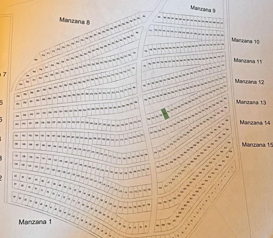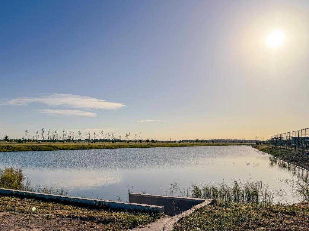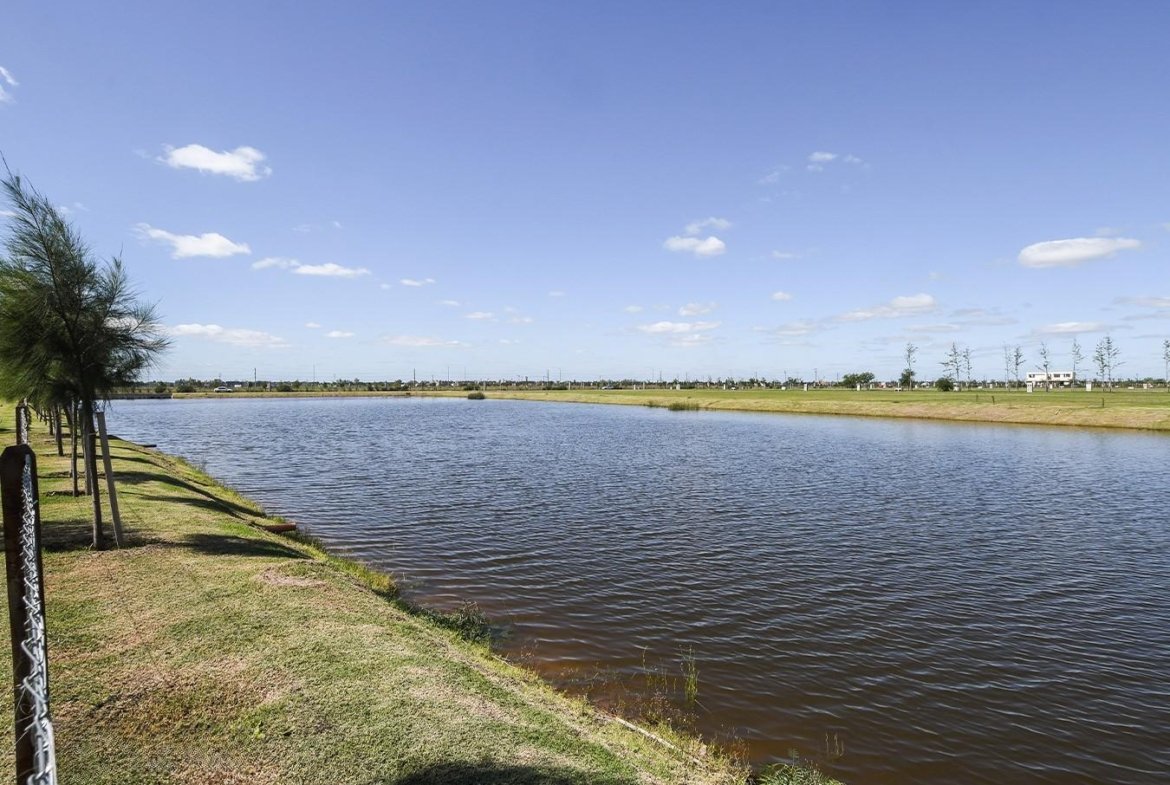 Lote 532 ubicado en el centro del barrio lo cual le da una ubicación privilegiada, sobre las margenes de uno de los reservorios de agua. Frente Sur.